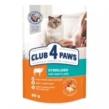 Вологий корм для кішок Club 4 Paws для стерилізованих з яловичиною в желе 80 г (4820215367585)